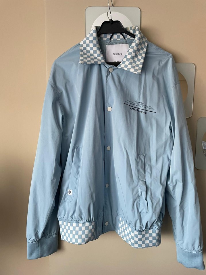 Az giyilmiş Bersheka M beden açık mavi çıtçıtlı ince mevsimlik mont