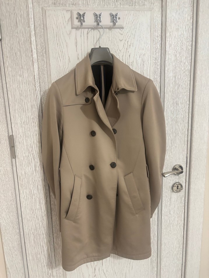 Bej renkte, düğmeli ve kesimli yaka detaylı midi uzunlukta kadın trençkot. Uzun kollu ve rahat kalıplı, günlük sokak stiline uygun sentetik kumaştan üretilmiştir.
