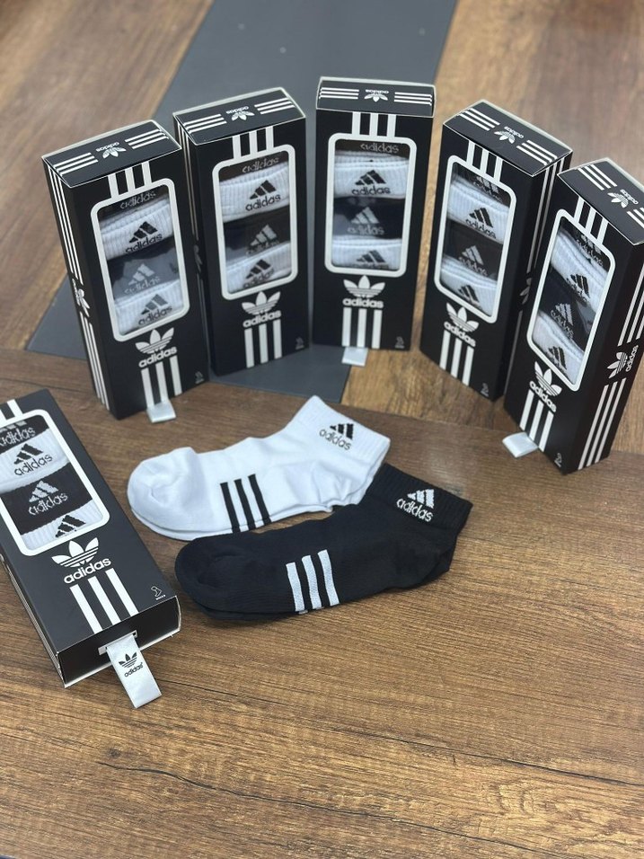Adidas markalı, baskılı ve fit kesim erkek mini çoraplar. Siyah ve beyaz renk seçenekleriyle athleisure tarzını tamamlar.