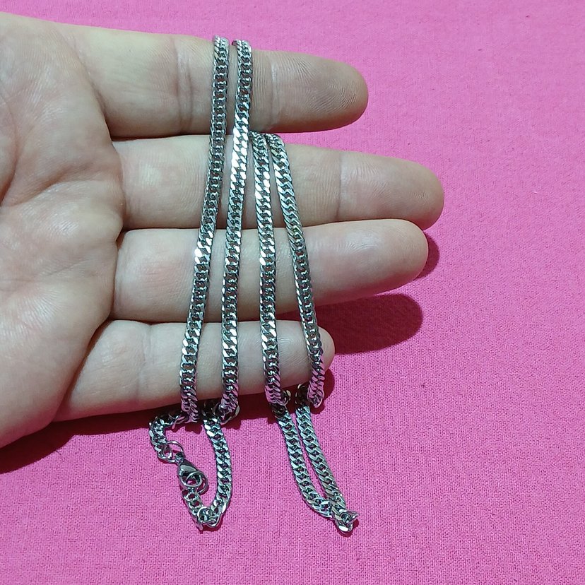 Erkekler için minimalist gümüş zincir kolye, canlı pembe zemin üzerinde şık ve avangart bir tarz sunar. Trend belirleyiciler için ideal. 65 cm 3 mm