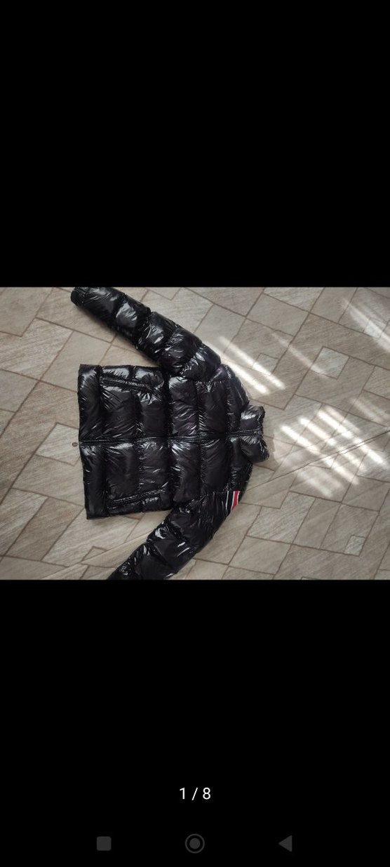 Siyah erkek şişme mont, fermuarlı ve fitted kesimlidir. Uzun kollu, parlak sentetik kumaştan yapılmış, günlük kullanım için uygundur. yeni etiketlidir beden için sorunuz