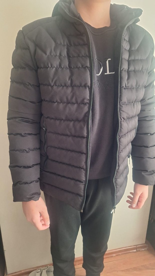 Erkekler için, siyah renkte mont. Günlük kullanıma uygundur.13-14 yaş uygun