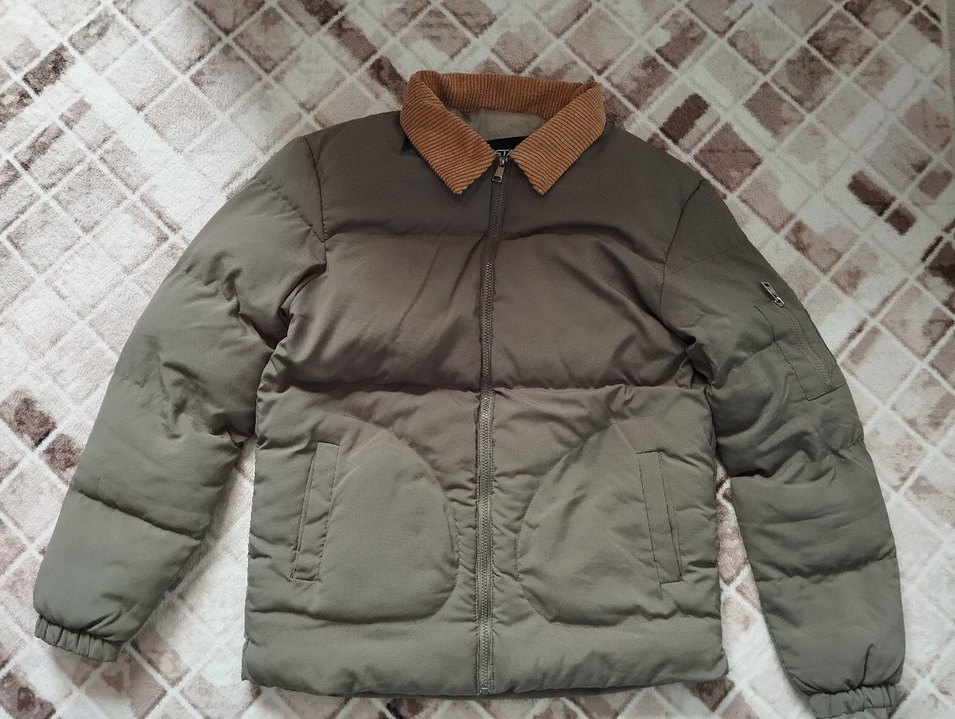 Erkek mont l beden az giyilmiş. kol fermuarinda küçük söküm var.