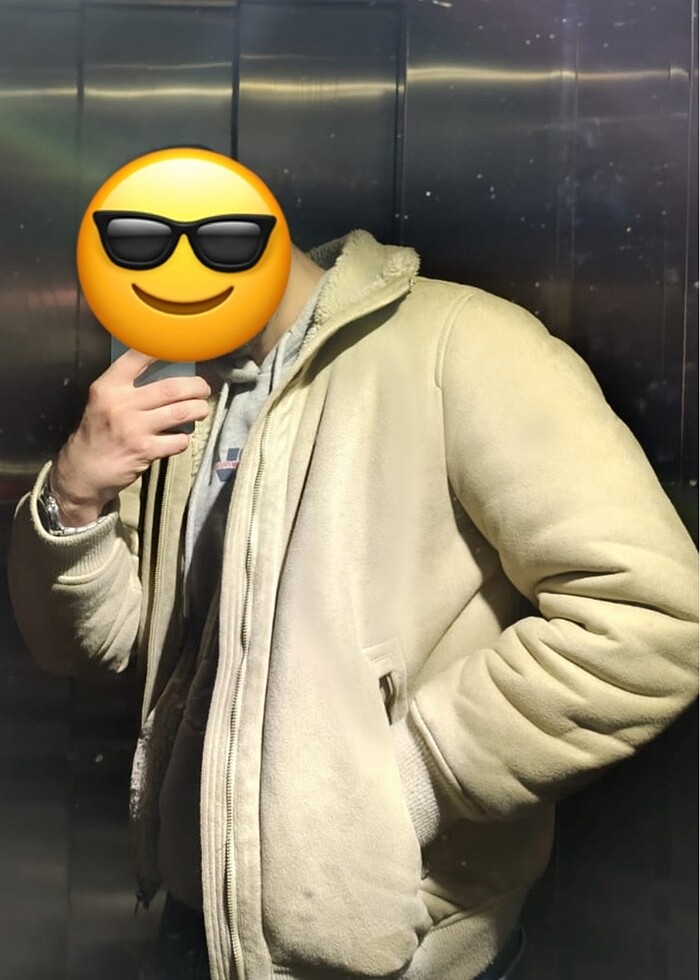 Bej rengi içi kürklü cepli zincirli erkek mont