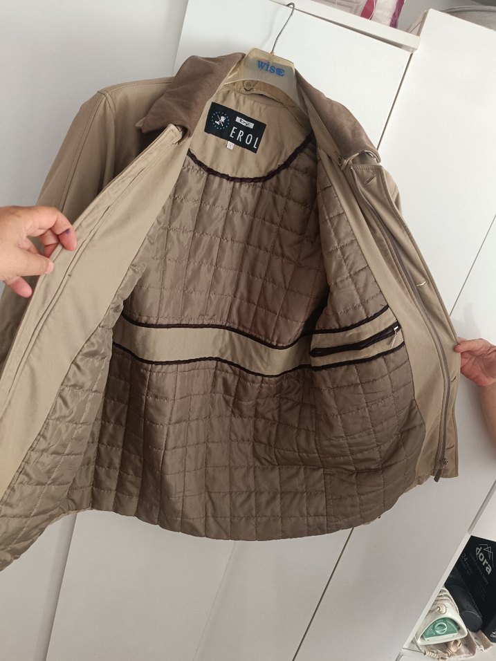 Erkek Mont S Beden Bol kalıp geçen yıl alindi magaza ürünü, kaliteli kumaş fermuarlı ve düğmeli, 2 yan 1 iç cep mevcut, dugmede eksik var sağ cep üstünde iğne ucu kadar delik herşeyi detaylı yazdım, aldığım fiyatın üçte birine koydum beden şuan uymadigindan satılıktır, Alan güle güle kullansın