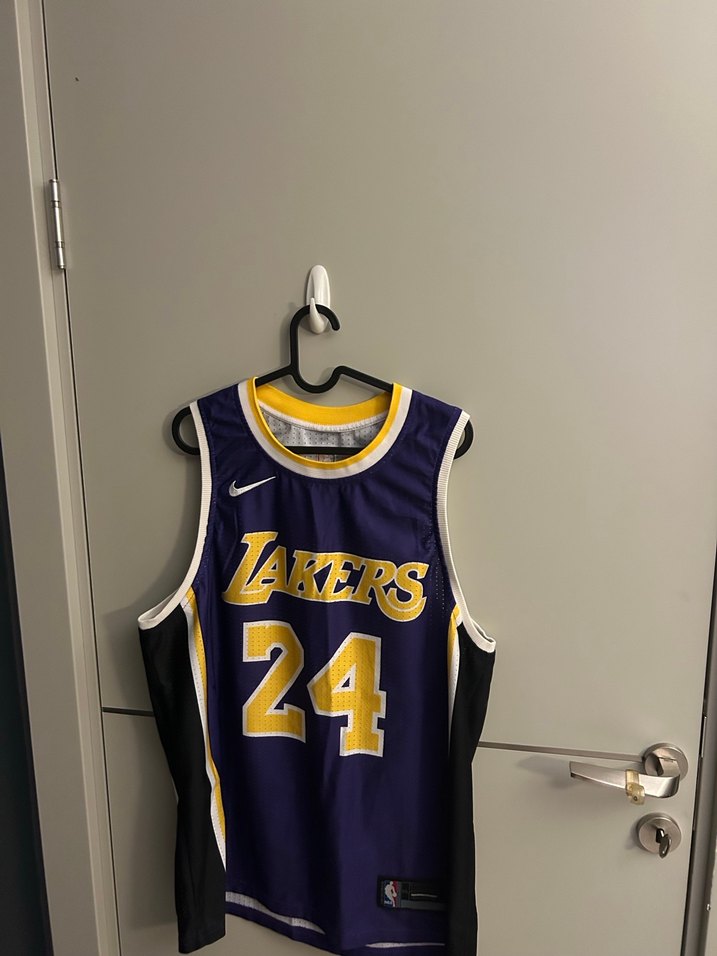 Mor renkli, kolsuz Lakers basketbol forması, yuvarlak yaka ve 24 numara baskılı. Sentetik kumaştan, normal boy ve dar kesim. Cırt cırt detaylı.