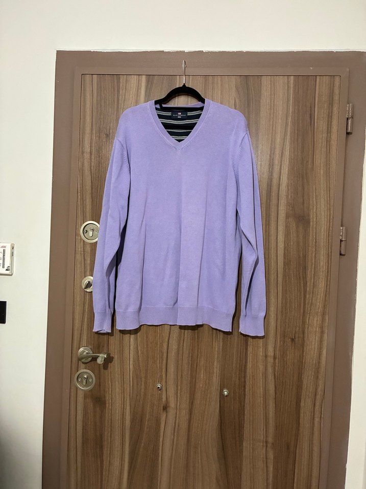 Erkek mor renkli, V yaka, uzun kollu, triko kumaştan yapılmış, regular fit, desensiz kazak. Günlük kullanıma uygun, rahat ve şık. Marks and spencer