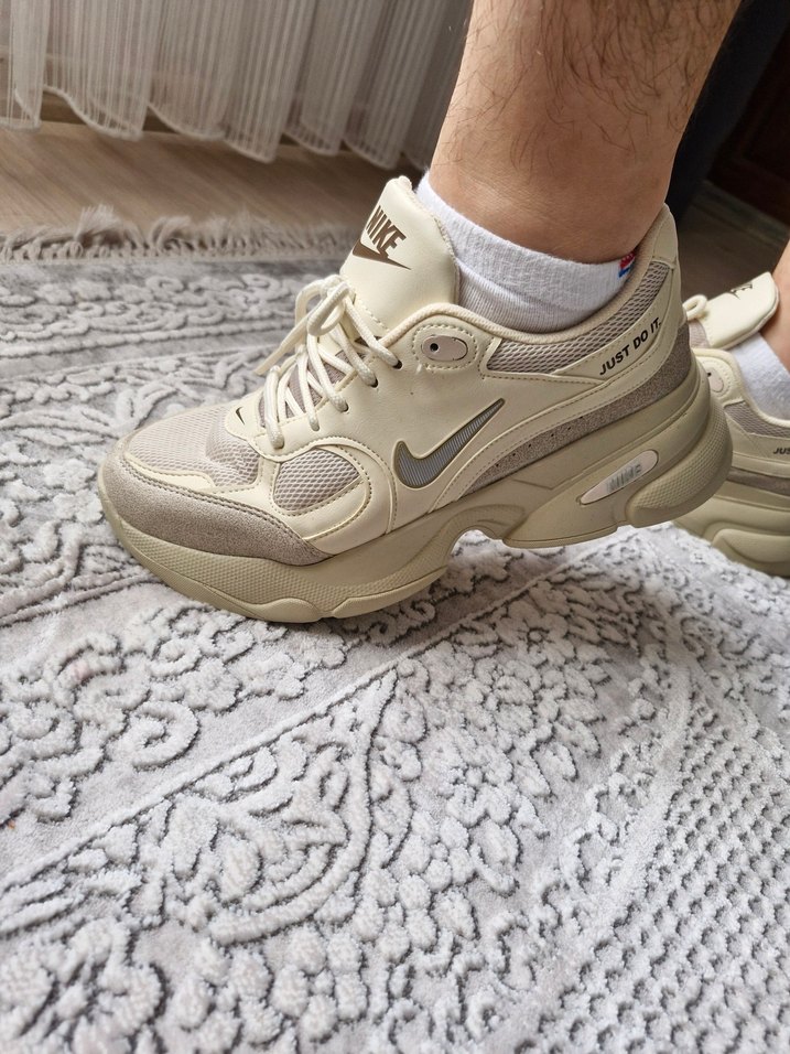 Nike krem bağcıklı erkek spor ayakkabısı kauçuk tabanlıdır. Gri Nike logosu ve desen içermeyen sade tasarımıyla spor sokak stiline uygundur.(Orjinal değildir)