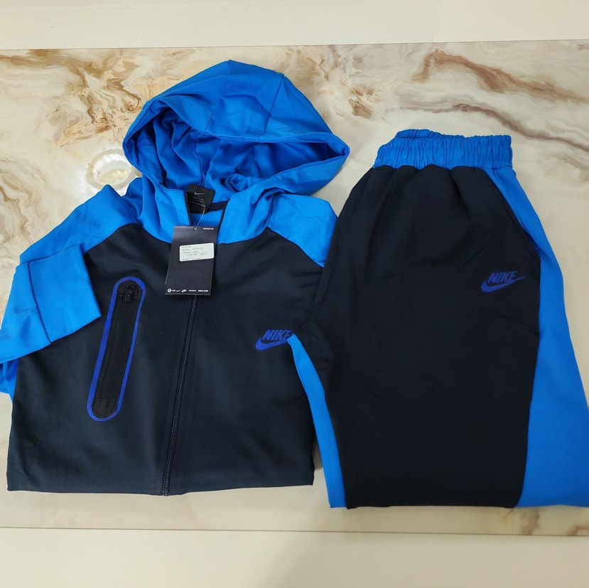 Nike marka, mavi ve siyah renklerde, fermuarlı cepli, kısa boylu ve kapüşonlu erkek çocuk eşofman takımı. Yumuşak ve sıcak kumaştan, şık ve rahat kullanım için uygundur. ️