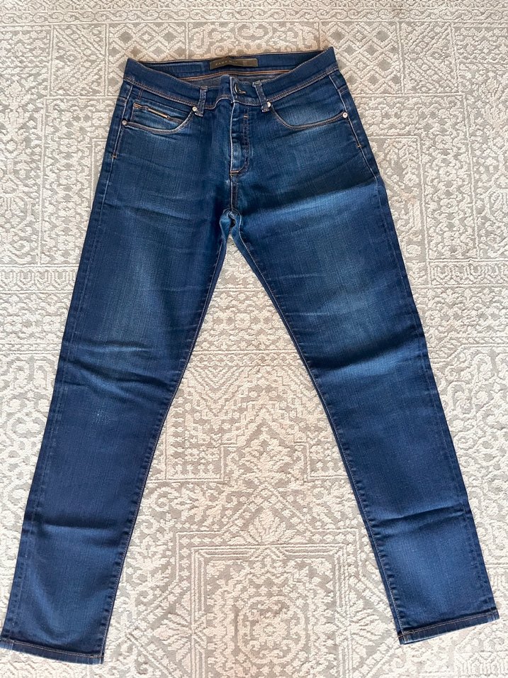 Erkekler için normal kesim ve normal boyda, mavi denim jean. Günlük rahat kullanıma uygundur.