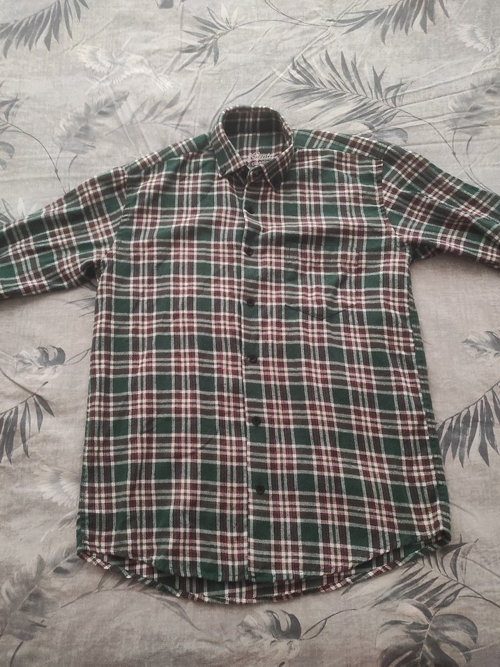 Erkek oduncu gömleği, düğmeli ön kısım, kısa kollu ve yakalıdır. Çok renkli koyu kareli desen, rahat kesim ve normal midi uzunluktadır. Günlük rahat sokak stili için uygundur. S beden