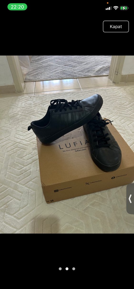 Erkekler için siyah, bağcıklı ve desen içermeyen kauçuk tabanlı spor ayakkabılar, günlük sokak stili için uygundur. Marka LUFI kutuda görünüyor. Orjınal adıdas