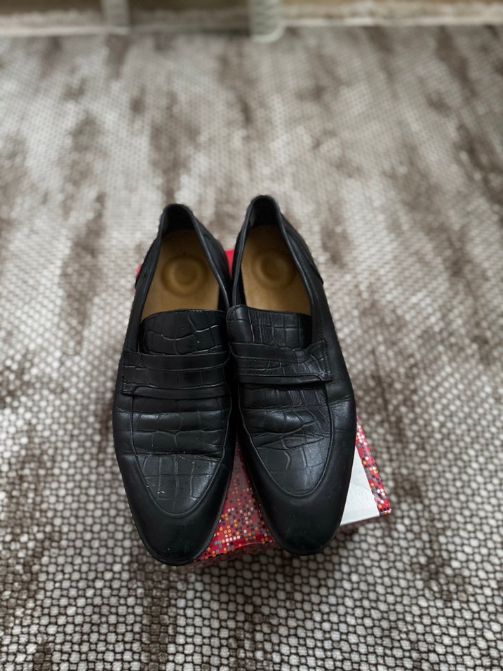 Siyah renkli, krokodil desenli tokalı erkek klasik ayakkabılar. Dayanıklı kauçuk malzemeden üretilmiş, günlük kullanıma uygun.