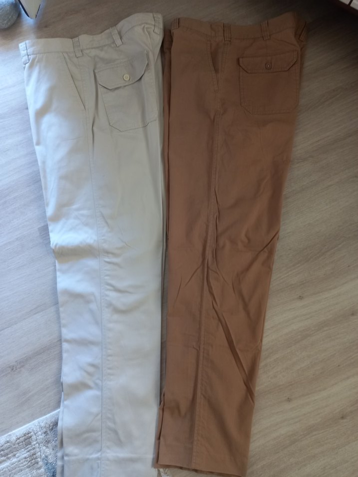 Bej ve camel renkli, pamuk kumaştan yapılmış, normal ve rahat kesime sahip erkek pantolonları tek olarak satiliktir ölçüleri var ikisinin de basen ve boy ölçüleri aynı bel ölçüleri farklı Günlük kullanıma uygun, sade ve şık. ikili almak isterseniz indirim yapilir hicbir defosu yok iade yok