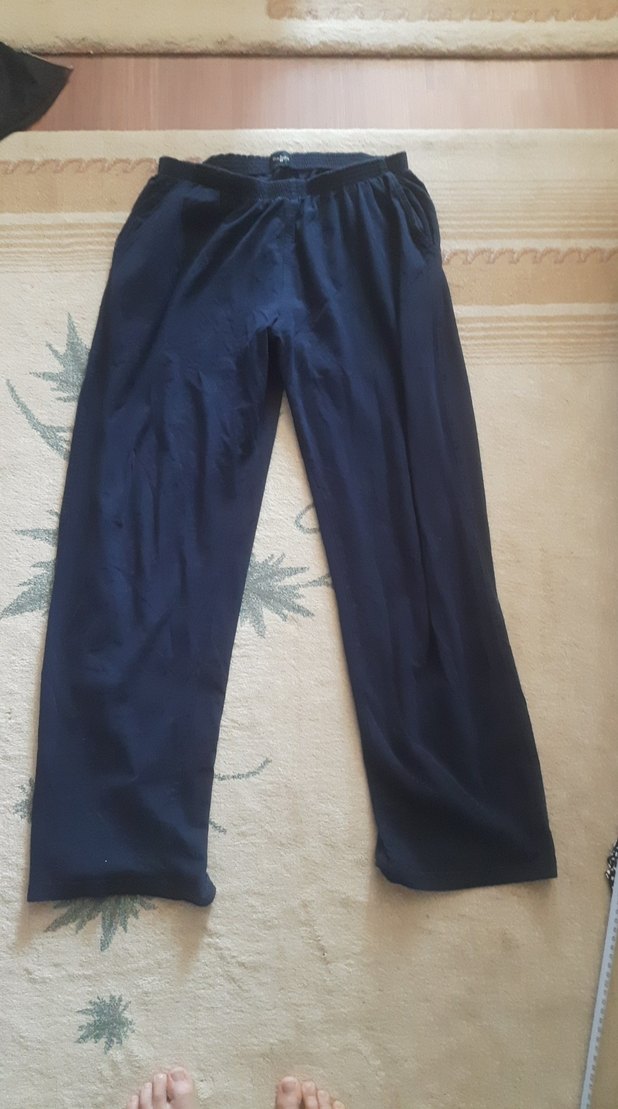 Pamuklu kumaştan cepli, rahat kesim ve drapeli lacivert erkek alt eşofman, günlük rahat kullanım için uygun.