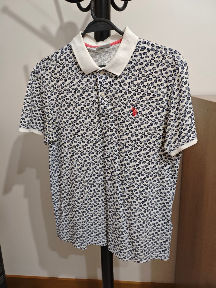 Erkek pamuklu polo tişört, desenli, yakalı ve düğmeli. Kısa kollu, bol kesim, günlük rahat kullanım için uygundur. Beyaz ve gri tonlarında, küçük kırmızı logo detaylı.