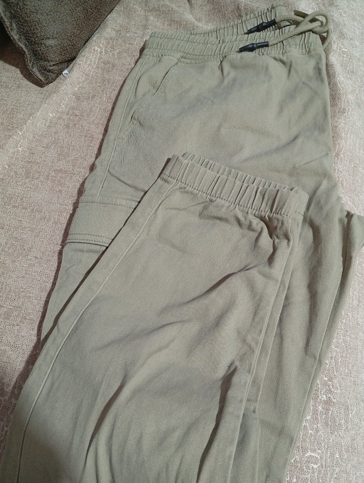 Bej renkte, sentetik kumaştan yapılmış, fermuarlı detaylara sahip pantolon. cepli dış mekan kullanımı için uygundur.