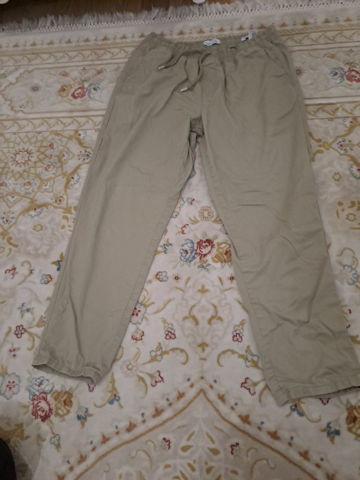 Bej renkli, pamuklu, bol kesim ve kemerli kadın pantolonu, midi boyda, rahat sokak stili ve dış mekan kullanımı için uygundur. 32 numara s beden temiz 5 10 kere giyildi