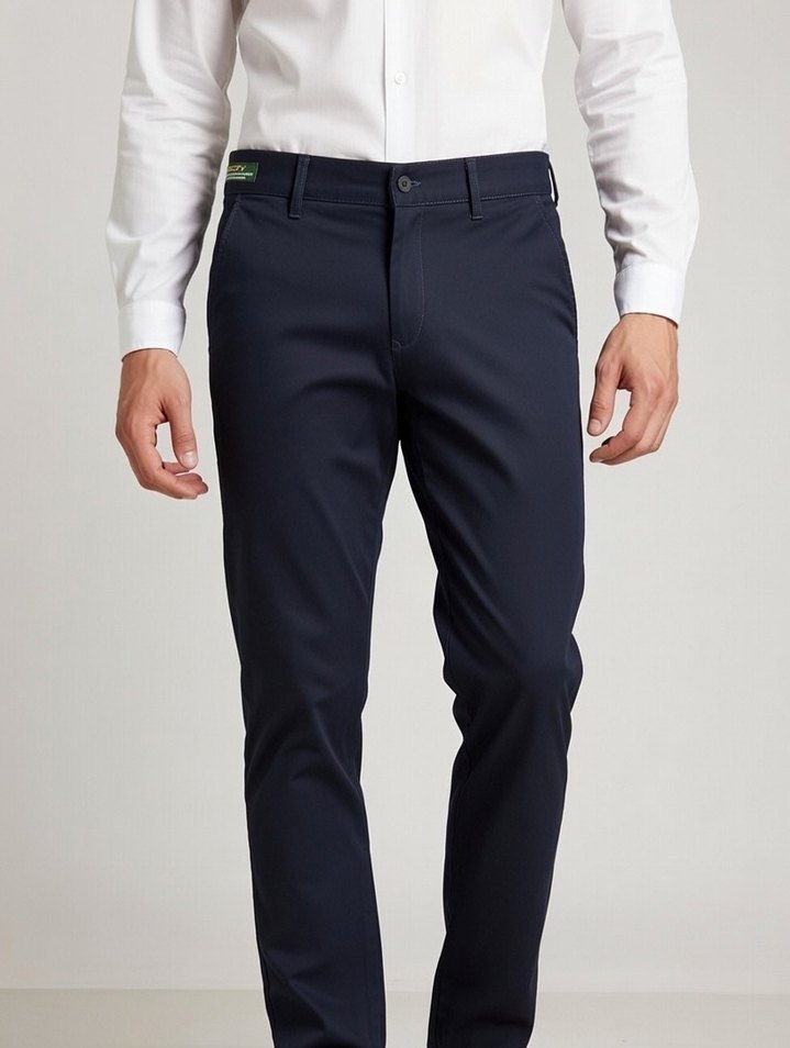 Erkekler için normal kesim ve normal boyda, lacivert renkte, sentetik kumaştan üretilmiş. Rahat ve şık, iş ortamına uygun.