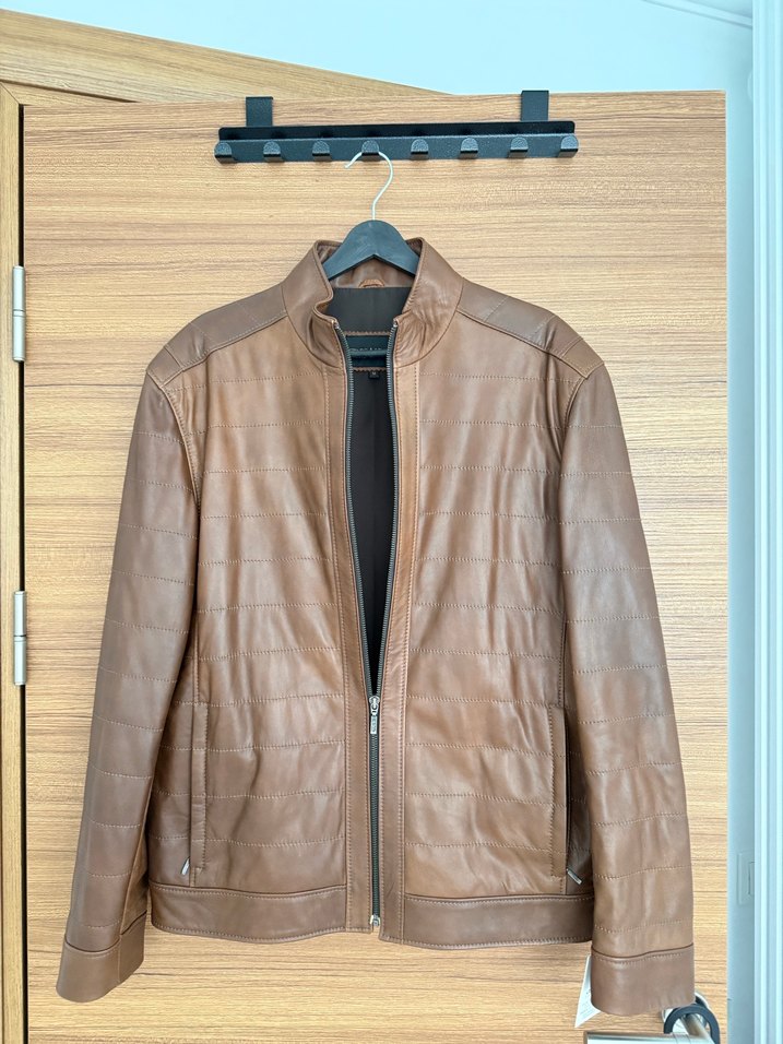 Erkek Parlak Kahverengi Deri Ceket
