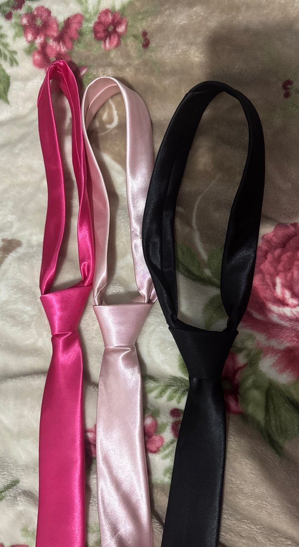 Gotik Paris tarzında koyu canlı pembe saten erkek kravatları. Canlı pembe, açık pembe ve siyah renklerde üç seçenek.