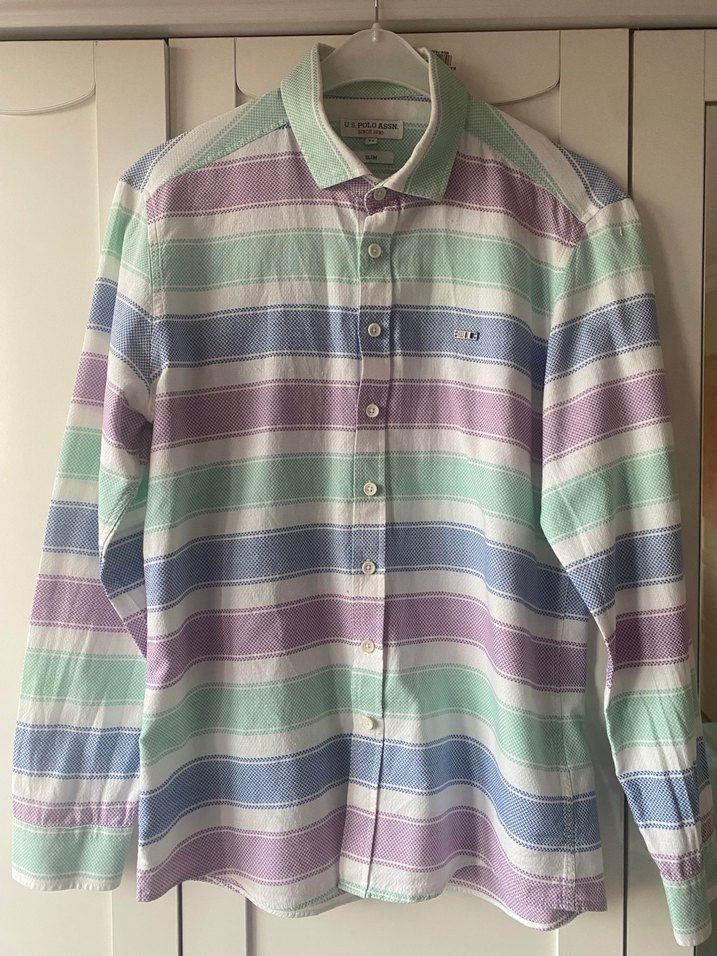 Erkekler için uzun kollu, yakalı ve pamuklu gömlek. Pastel çok renkli batik desenli, düğmeli ve rahat kesim. Günlük sokak stili için uygun. M bedendir fakat S beden için uygundur