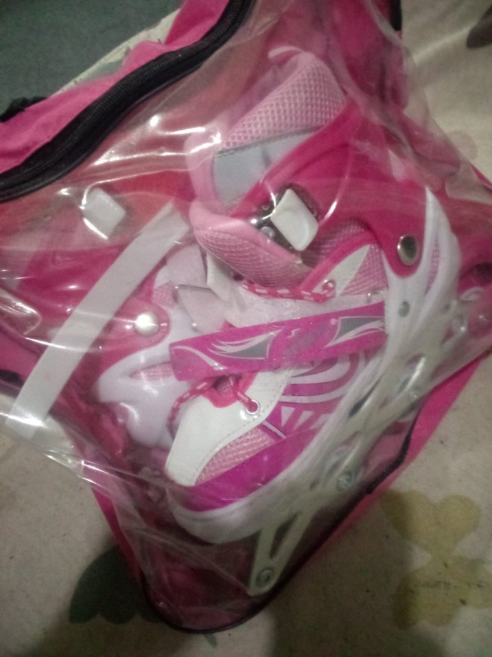 Elastik kayışlı, plastikten yapılmış, renkli baskılı kiz paten ayakkabısı, spor ve streetwear tarzına uygun.çok az kullanildı
