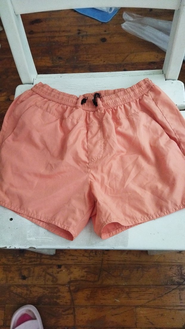 Erkekler için rahat kesim, pastel pembe renkte, desen içermeyen mini mayo şortu. Plaj ve sokak stili için uygun, zahmetsiz şıklık sunar. resimdeki gibi küçücük bir sıkıntı var