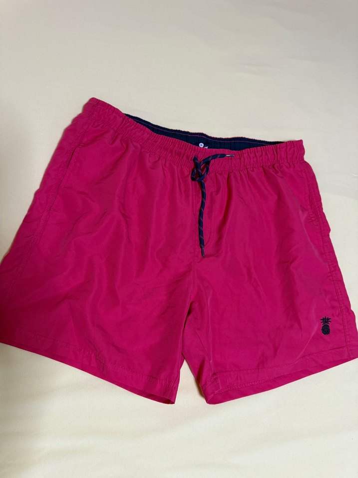 Canlı pembe renkli, bol kesim erkek yüzücü şortu. Elastik bel ve bağcık ile sahil için uygun, sade tasarımda küçük ananas detayı bulunur. XL beden LCW marka
