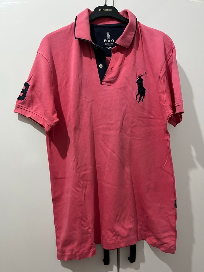 Pembe renkli, kısa kollu ve düğmeli erkek polo tişört. Yumuşak ve sıcak dokulu kumaştan, baskılı detaylı, günlük kullanıma uygun. XL beden