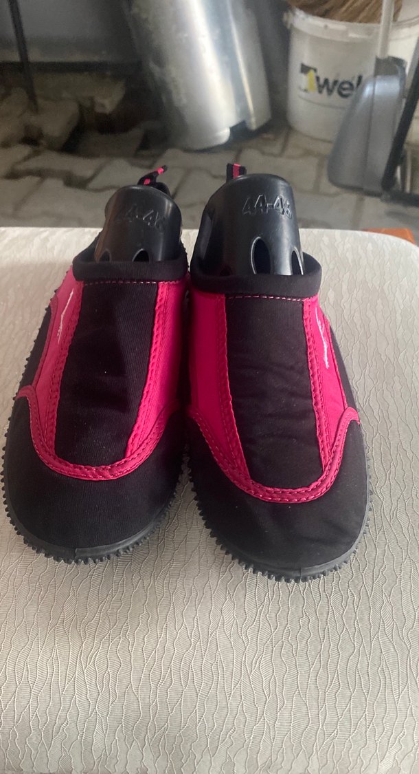 Koyu pembe renkli, kauçuk tabanlı ve velcro bantlı erkek su ayakkabısı. Plaj ve sokak stili için uygun, modayı takip edenler için ideal.