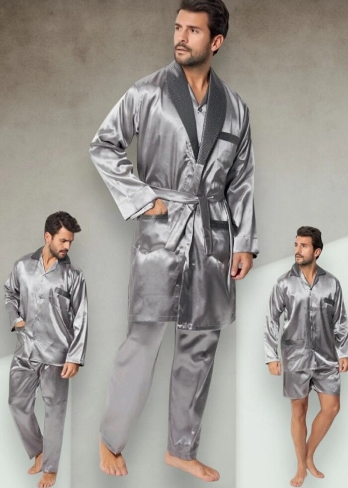 Saten takım hiç kullanılmadı. Antrasit renk. L beden