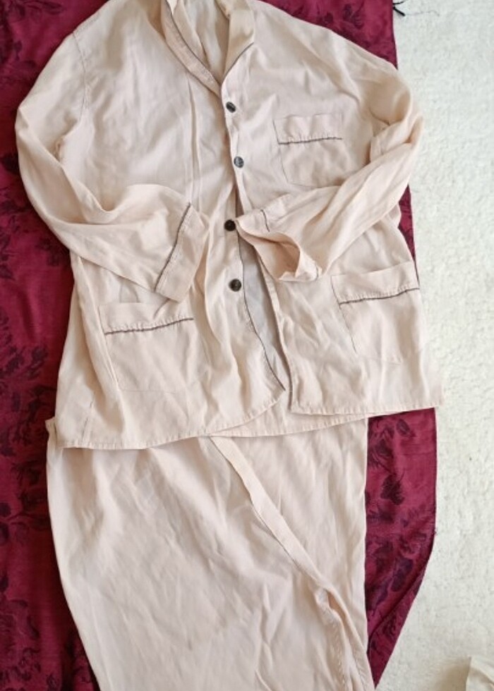Erkek pijama takımı krem rengi kahverengi çizgileri vardı melere Çok güzel çok kullanışlı sayılı giyinmiştir rafa kaldırılmıştır kesinlikle Hiçbir sıkıntısı yoktur Alana hayırlı olsun