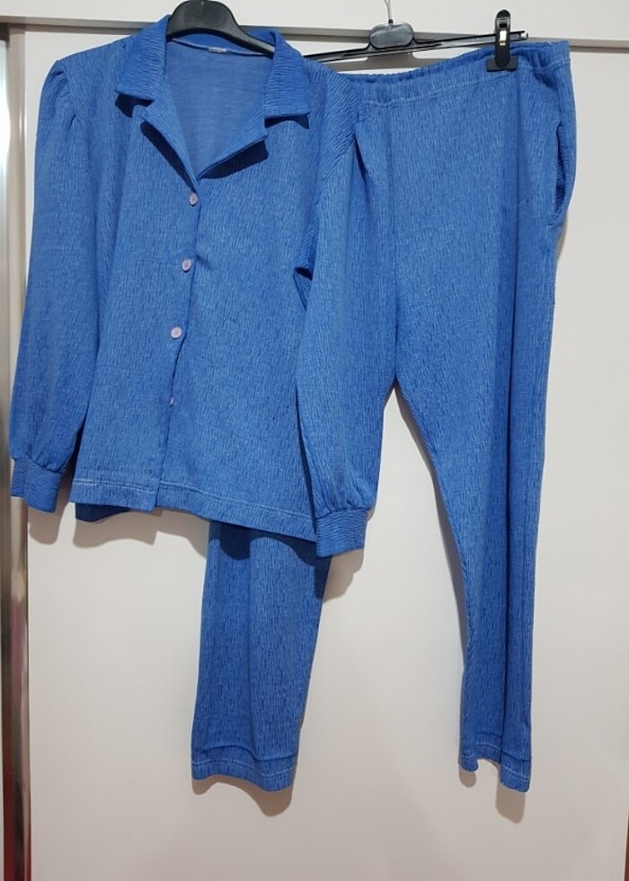 Az kullanildi. iki kol arası 62×2=124cm. boy: 65cm. alt pijama ölçüleri bel:55×2=110cm. boy:101cm.