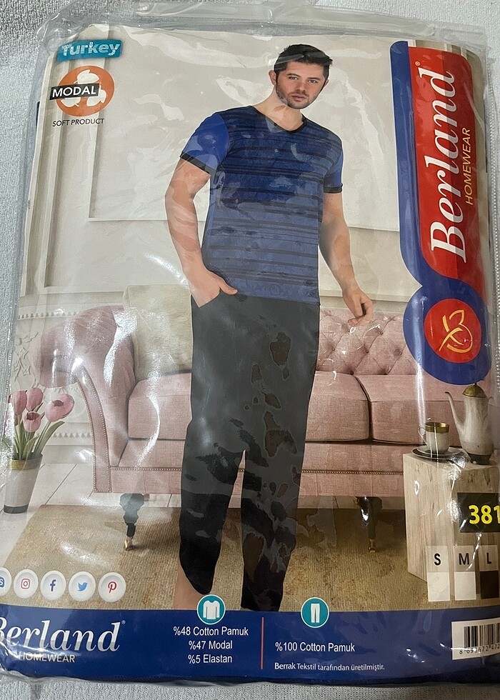 Erkek alt üst pijama takımı mavi renk L beden