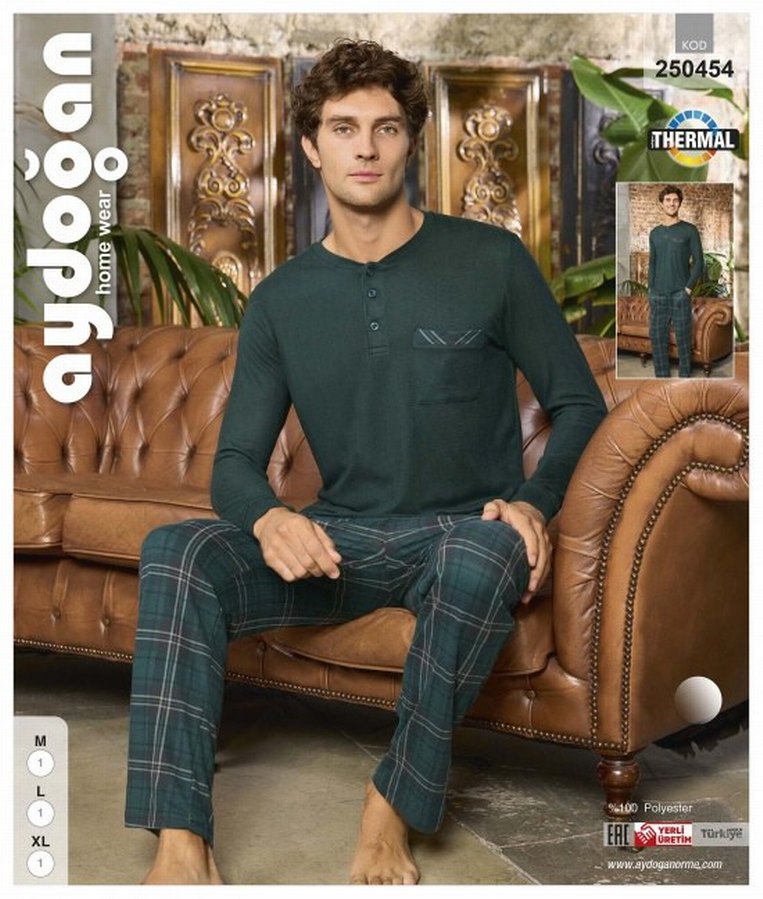 AYDOĞAN 250454 ERKEK THERMAL PATLI U.KOL PJ TAKIM Düğmeli üstü ve gri kareli midi boy pantolonu ile erkek pijama takımı. Uzun kollu, bisiklet yaka ve rahat kesim. ️