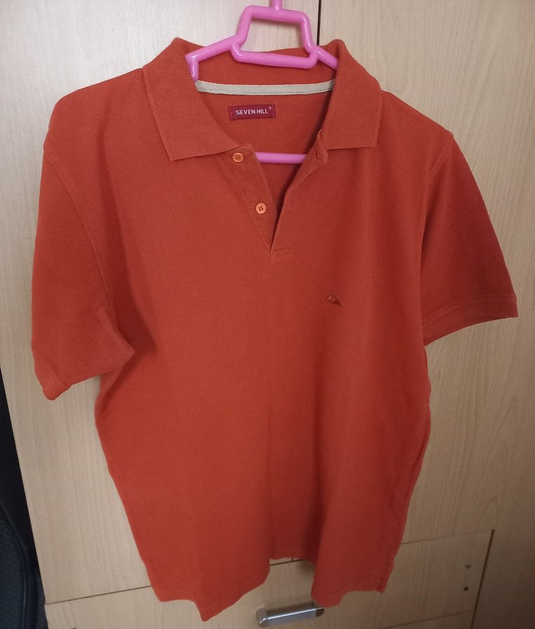 Bu erkek polo tişört, pamuklu kumaş, yakalı ve kısa kolludur. Az kullanılmış.