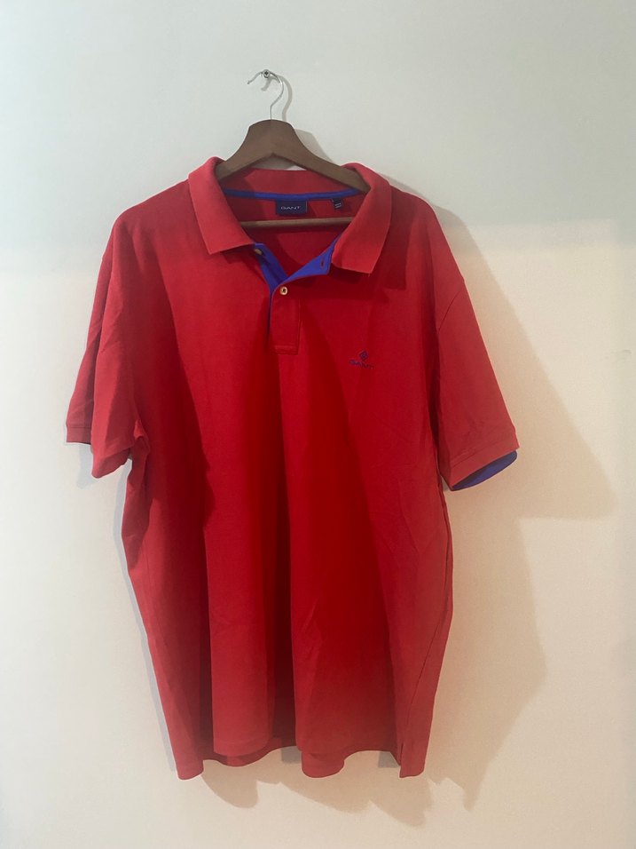 Kırmızı erkek polo tişört, düğmeli, kısa kollu ve yakalıdır. Rahat kesim ve sentetik kumaştan üretilmiştir, günlük kullanıma uygundur.
