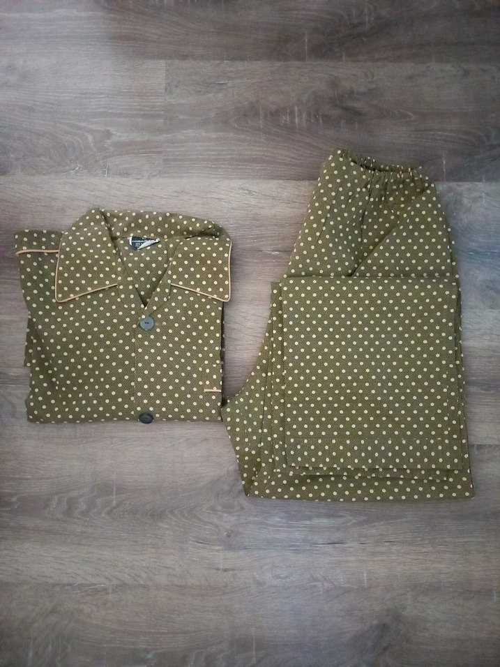 Kahverengi puantiyeli, uzun kollu ve regular fit vintage sokak tarzı ile rahatlık sunar. iki koltuk arası 60 cm alt boy 107 cm beli lastiklidir. almanyadan alınmıştır kaldırılmıştır hiç kullanilmadi.