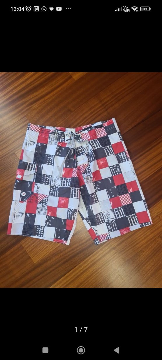 Çok renkli kare desenli, bol kesim erkek deniz şortu. plaj kullanımına uygun. Etiketi çıkarılmış ama hiç kullanılmamıştır yepyeni duruyor cebi de mevcut Sportive marka erkek şort mayo