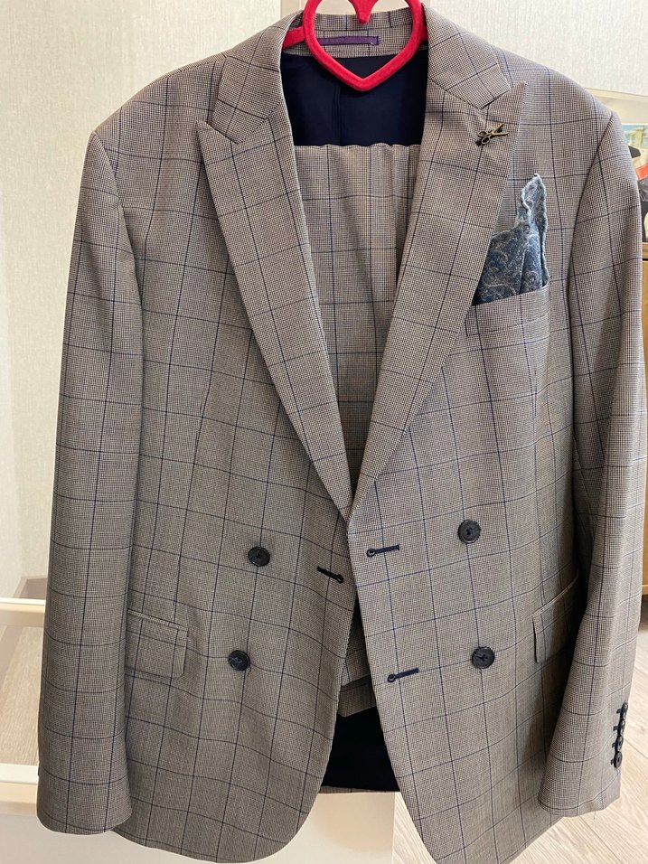 Ceket ve pantolon olmak üzere dar kesim iki parçadır . Mendili bulunmaktadır