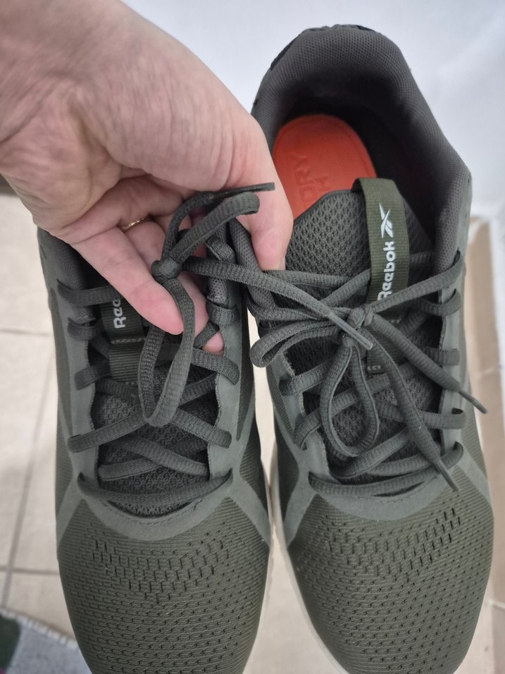 Nefes alabilir örgü üst kısmı ve gri bağcıklı, haki renk Reebok spor ayakkabılar, sokak giyimine uygun. Reebok Flaxagon Force 2 Erkek Outdoor Ayakkabı 43 Numara
