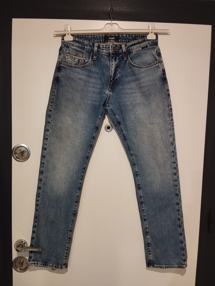 Erkekler için regular fit, kemerli ve normal boyda klasik mavi kot pantolon, günlük rahat kullanım için uygundur.