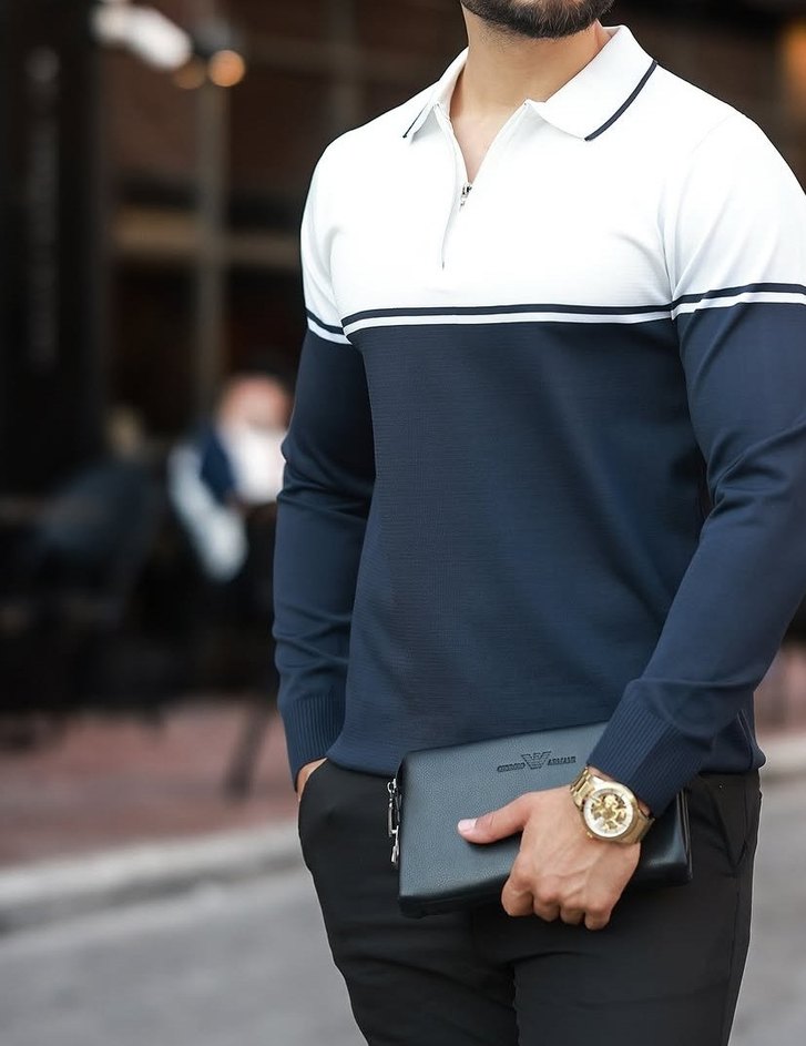 Erkekler için regular fit, uzun kollu ve yuvarlak yakalı fermuarlı sweatshirt. Beyaz ve koyu mavi renklerde, sentetik kumaştan üretilmiştir. Sokak tarzına uygun. bedenleri mevcuttur