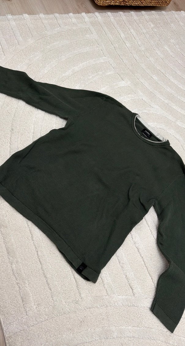 Erkekler için uzun kollu, bisiklet yaka örme kazak. Rahat ve bol kesim, günlük sokak stili için uygundur. Yeşil renkte, desensiz tasarım.