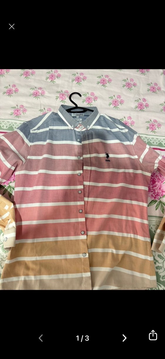 Erkekler için kısa kollu, yakalı ve düğmeli önü olan gömlek. Pastel tonlarda renkli yatay çizgiler ve bol kesim. Sentetik kumaştan, günlük sokak stili için uygun.