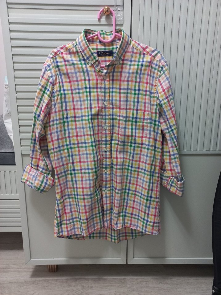 uzun kollu, yakalı ve düğmeli önü olan bu gömlek, rahat kesimi ve pastel renkli kareli deseniyle pamuk kumaştan üretilmiştir.