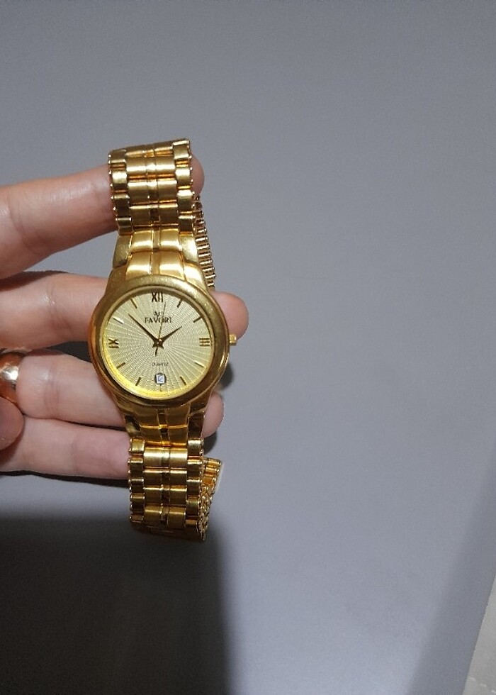 Ürün sıfır hiç kullanılmadı erkek altın saat sadece durmaktan pili bitmiş
