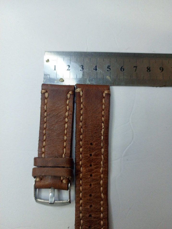 Hakiki crayz deriden elde çift igne ile dikim pim genişliği 24 mm toka pim uzunluğu 22 mm (24-22) ölçüler görsellerde verilmistir.