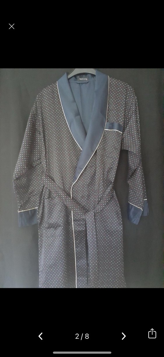 Erkek sabahlık ve pijama takımı, klasik kesim, uzun kollu ve uzun boy. Robdöşambr desenli, kuşaklı ve şal yaka detaylıdır.
